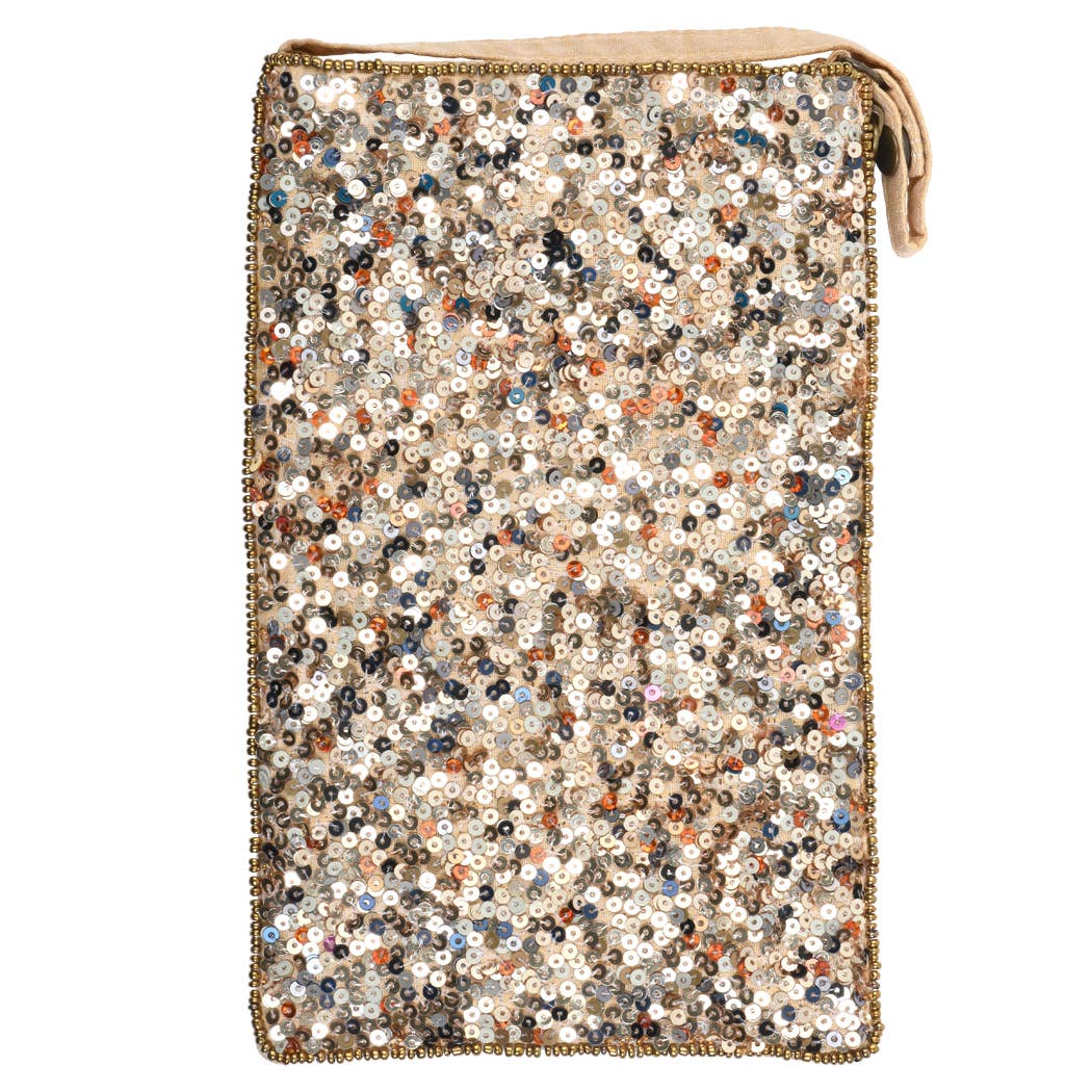 Hand beaded by artisans in India, this versatile bag can be used as a crossbody bag, wristlet, or unclipped by the strap to revamp into a purse on the go (just attach to belt loop or larger tote). Includes a convenient zipper enclosure on the side for easy access to cards or a cellphone. Each bag contains a 54" crossbody strap that can be tucked away when not in use.