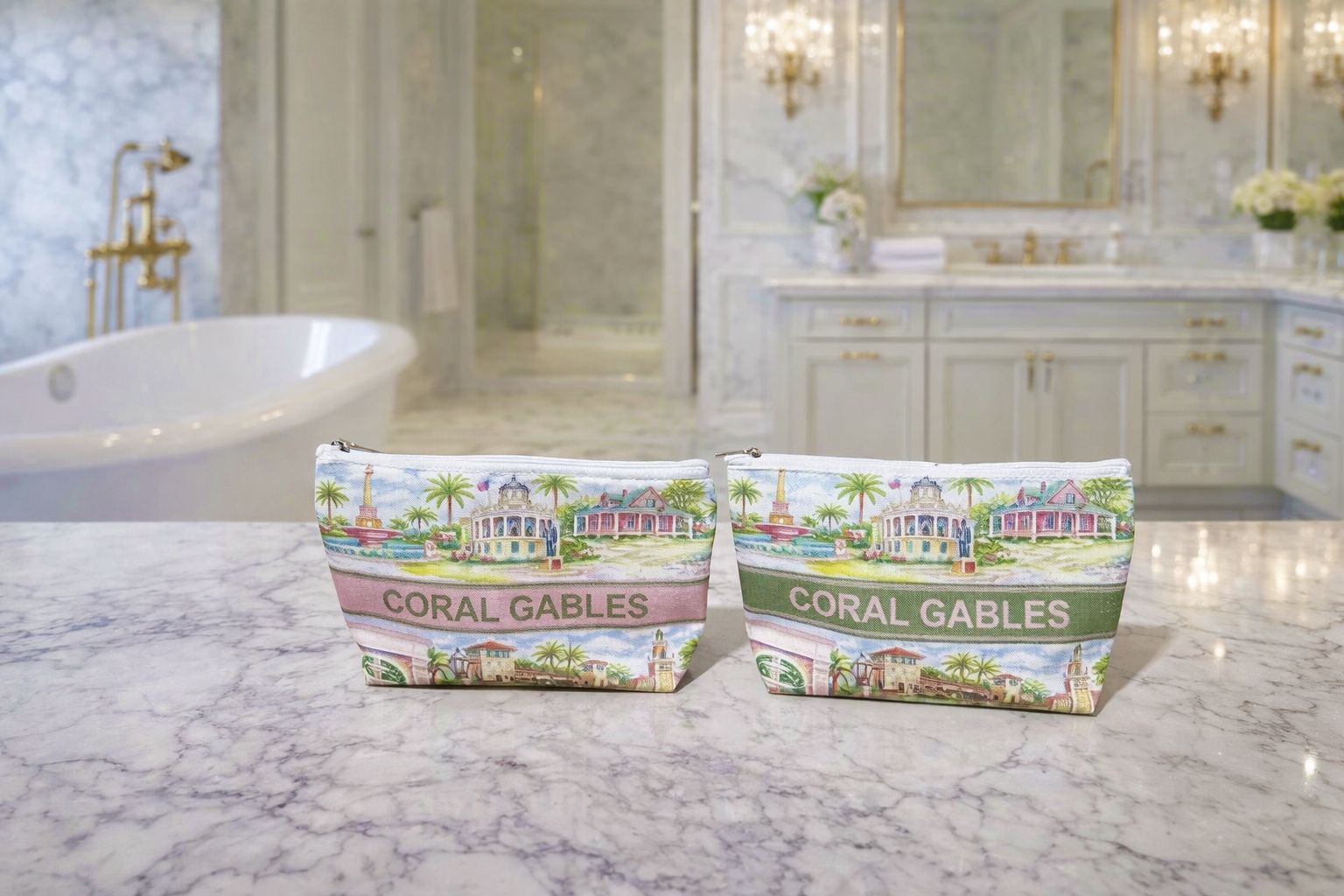 Bring a touch of local charm to your everyday essentials with our Coral Gables Landmark Zipper Tote. Featuring a colorful illustration of iconic Coral Gables architecture and scenery, this compact tote is perfect for cosmetics, travel items, or daily organization.