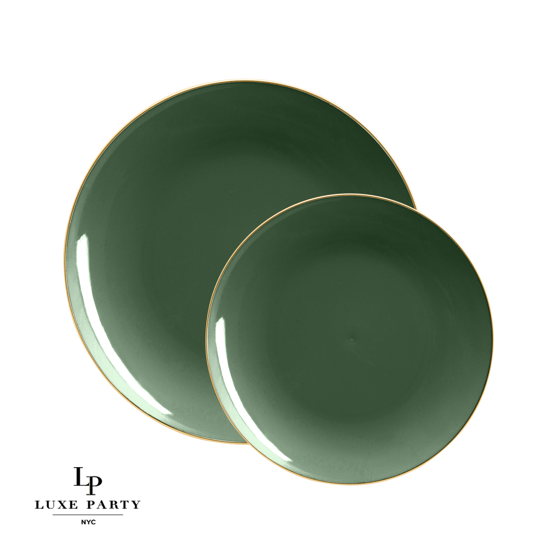 Round Emerald • Gold Plastic Plates | 10 Pack: 7.25" Appetizer Plates