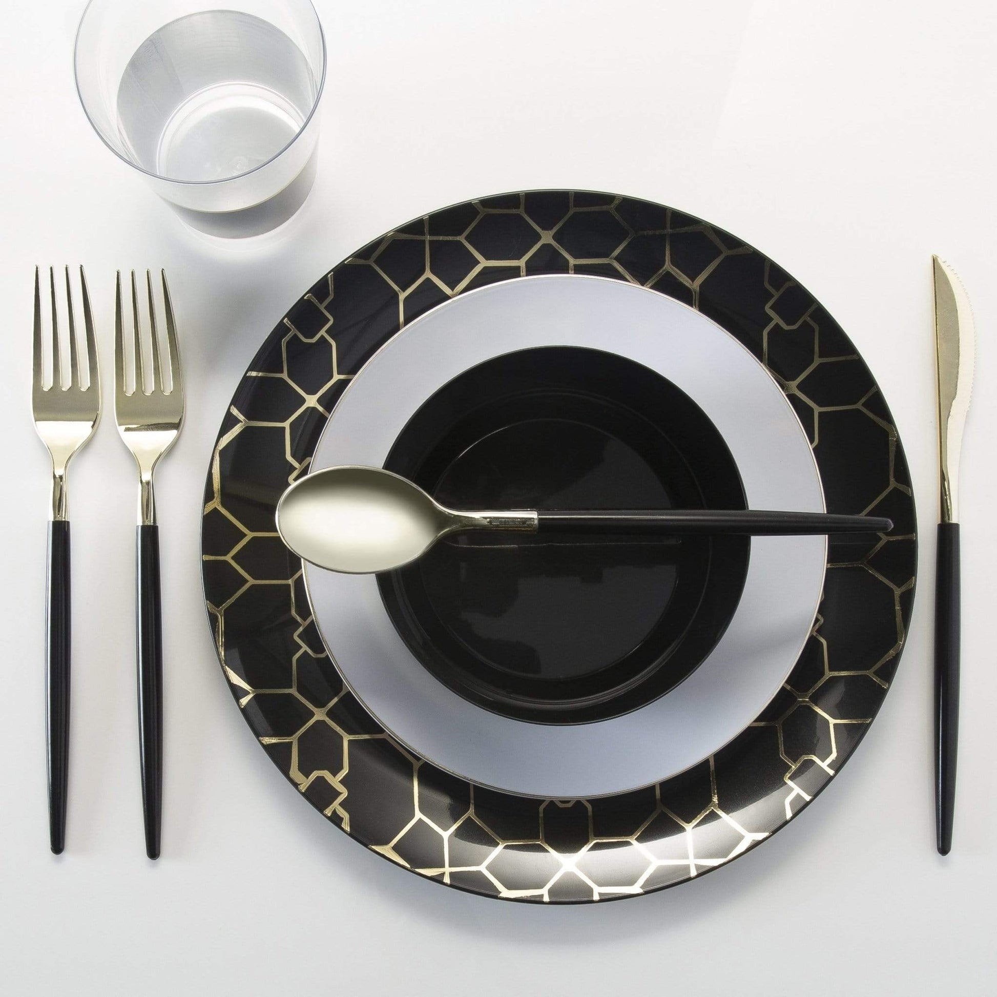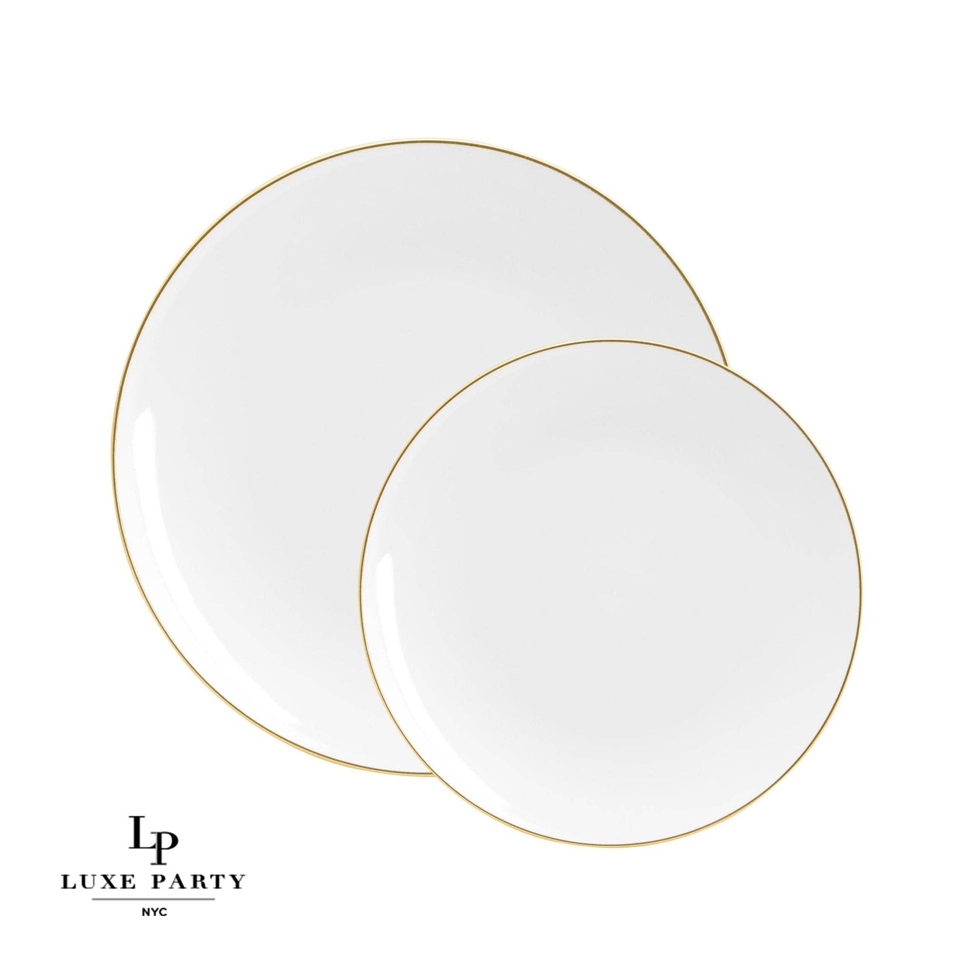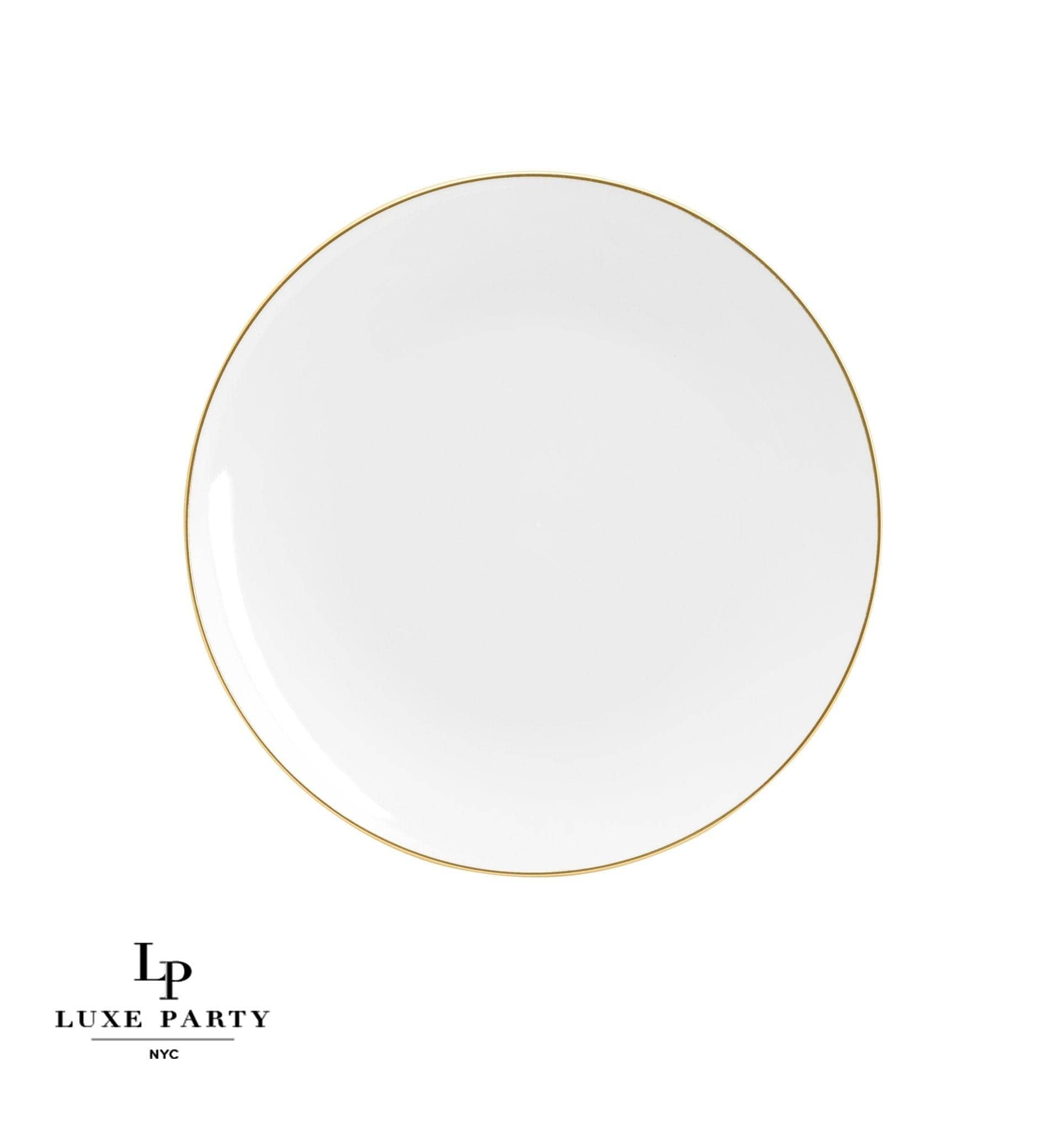 Round White • Gold Plastic Plates | 10 Pack: 10.25" Dinner Plates