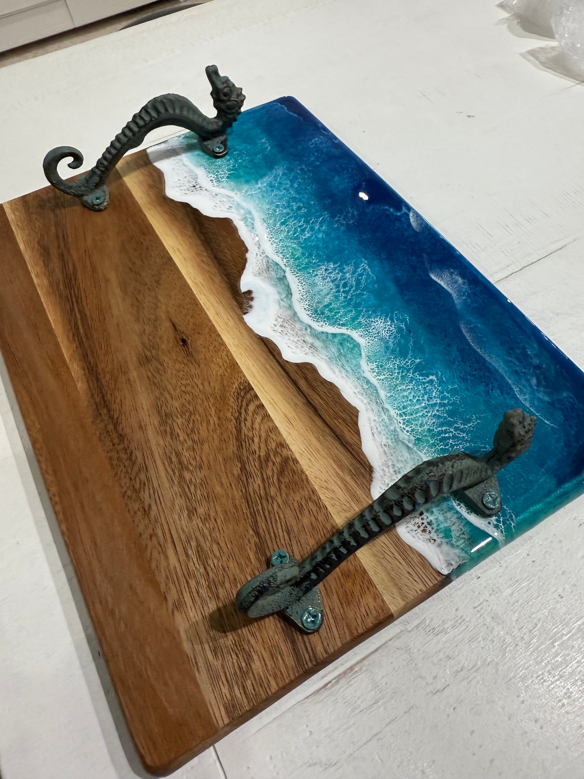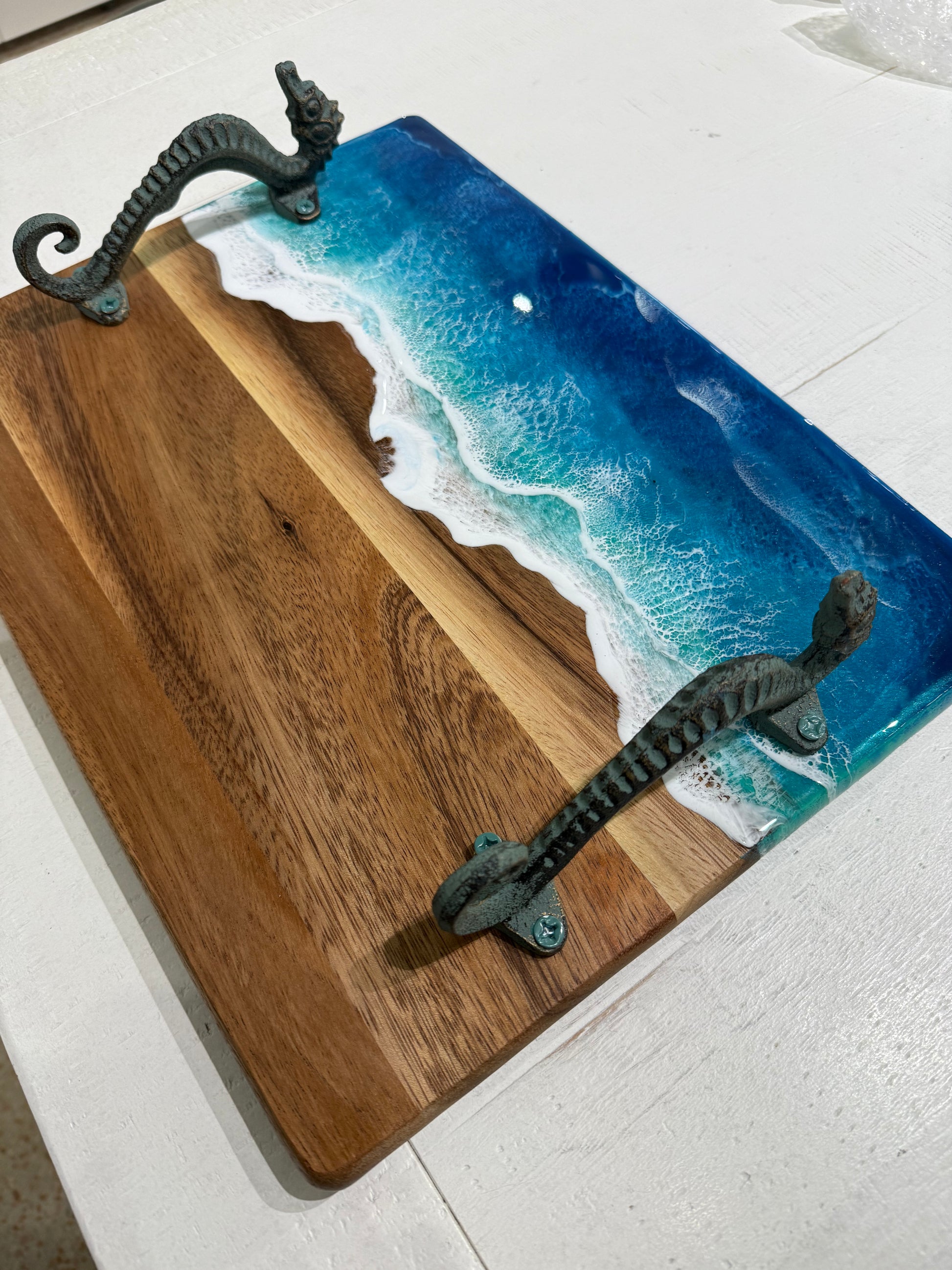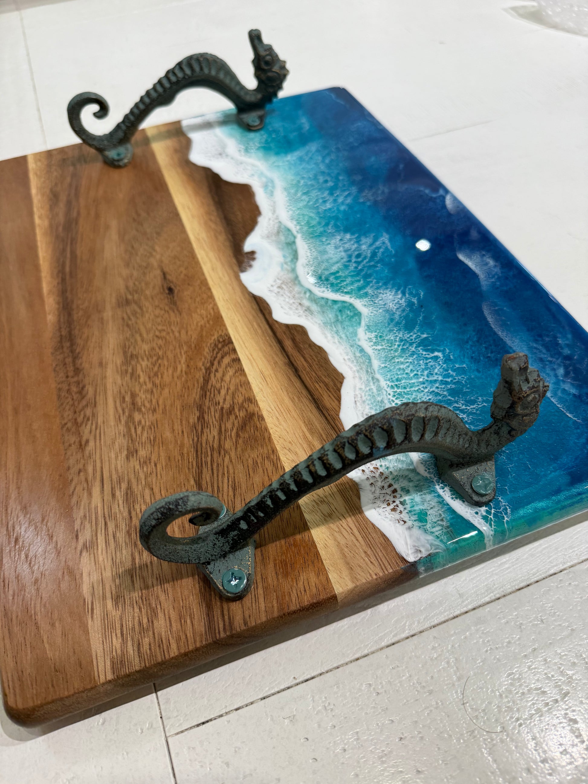 16x12 Acacia Board w/ Iron Seahorse Handle